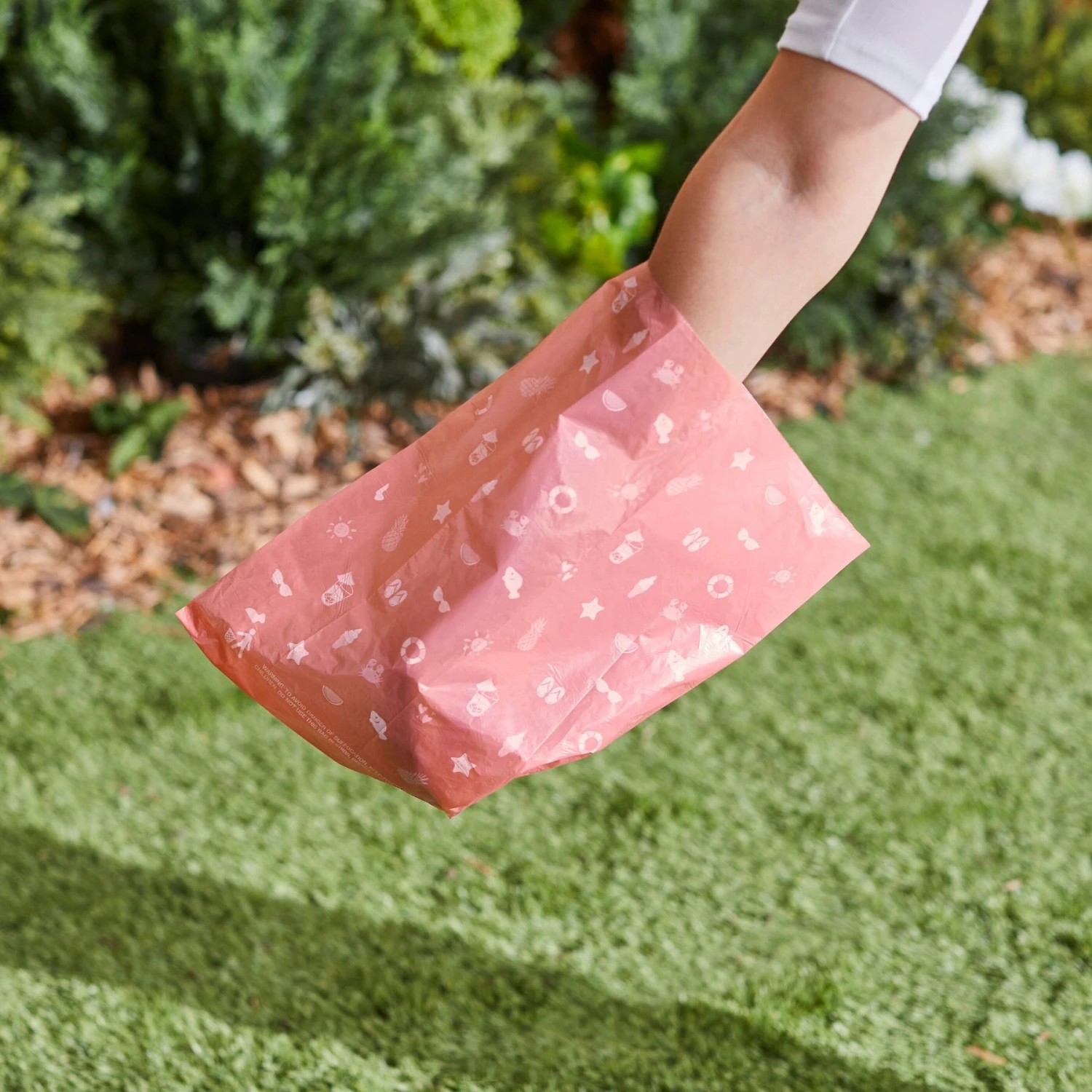 - From Frisco by Chewy. Blue and pink decorative prints show your pet’s personality. Bags are standard-size with 9×13-inch dimensions.