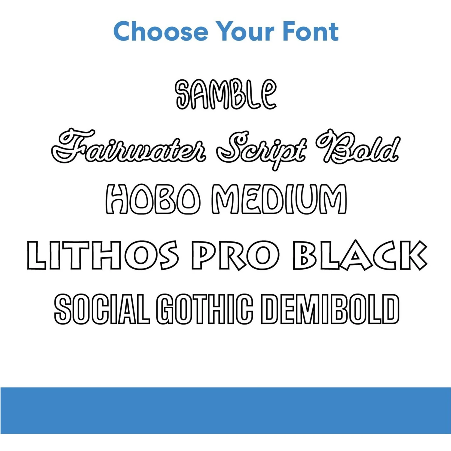 - Personalizable design lets you add up to two lines of text in one of five fonts, with up to 11 characters on the first line and seven characters on the second line.