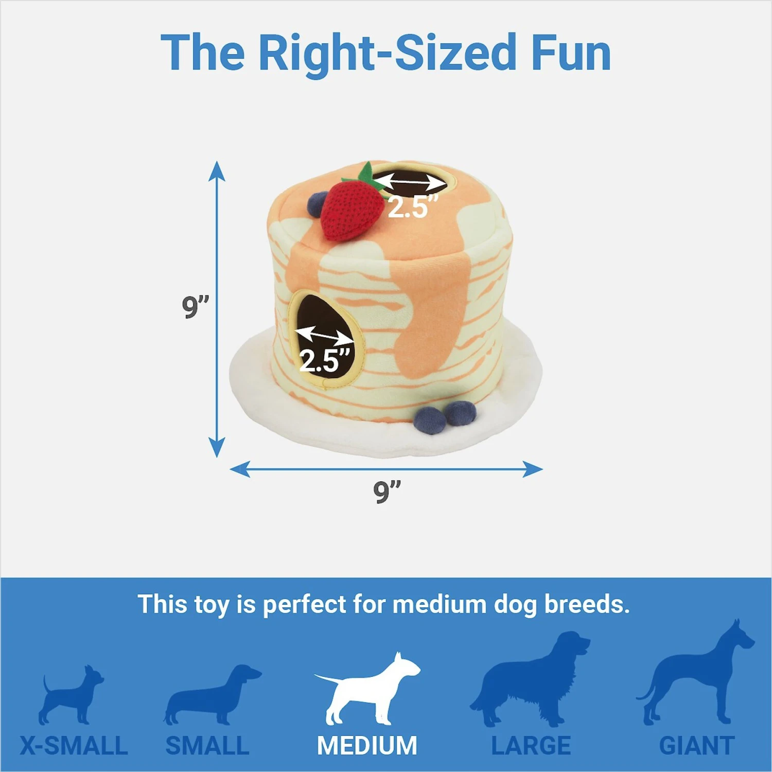 - Plush toy set comes with a pancake base and a strawberry, butter and maple syrup mini plush toys that you can stash and get your pup to retrieve for some hide-and-seek fun.